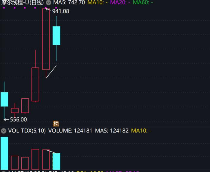 摩尔线程已经上市六天。最低价556元,最高价941.08元。一家未盈利的公司发行和上市即获得青睐。首先是高溢价发行。其次是上市受到热炒。既是情理之中,又出乎意料之外。摩尔线程既搭上了AI的潮流,也搭上了国产替代的机遇。受到热捧原本正常,但如此高溢价实在难以预料。因为摩尔线程的产品属小众高端产品,市场有限,目前仅限国内市场。国外英伟达遥遥领先,国内众多公司也虎视眈眈,面临国内外多重压力。本文拟从成交量角度,交易双方鹿死谁手。